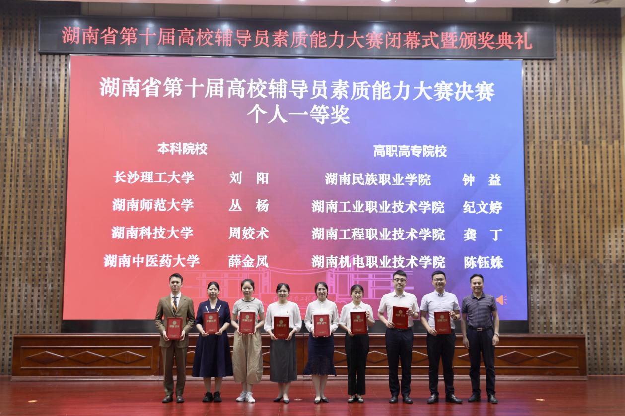 5月30日至5月31日,由中共湖南省委教育工委、湖南省教育厅主办的湖南省第十届高校辅导员素质能力大赛决赛在湖南工程学院举办,来自全省40所本科、高职高专院校的72名辅导员参赛。我校辅导员周姣术参加决赛并荣获一等奖,实现了我校在该项赛事上的历史新突破。