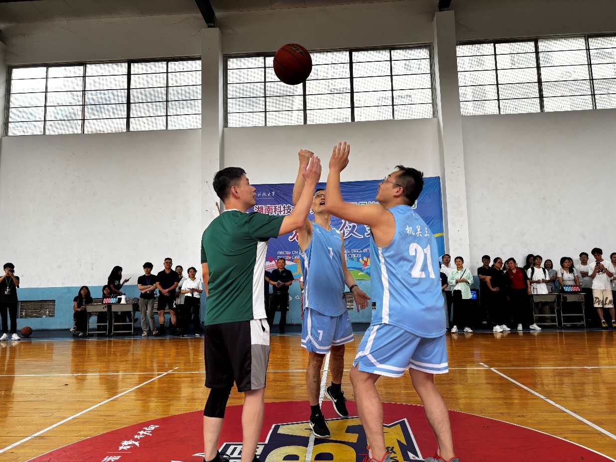 仪式结束后,蒋利平为篮球赛开球,点燃赛事“第一把火”。此次篮球赛由学工部、研究生院、保卫部、校友与合作办、校工会、校团委、前沿交叉学科学院及22个学院共同参与,赛事采用淘汰制,分为8支队伍两两PK,展开角逐。赛场上,球员们突破、传球、投篮一气呵成,攻防转换间尽显飒爽英姿;球场外,观众热情助威,将现场化作一片沸腾的海洋。在观众此起彼伏的欢呼声、呐喊声中,篮球赛以A组取得桂冠圆满落幕。