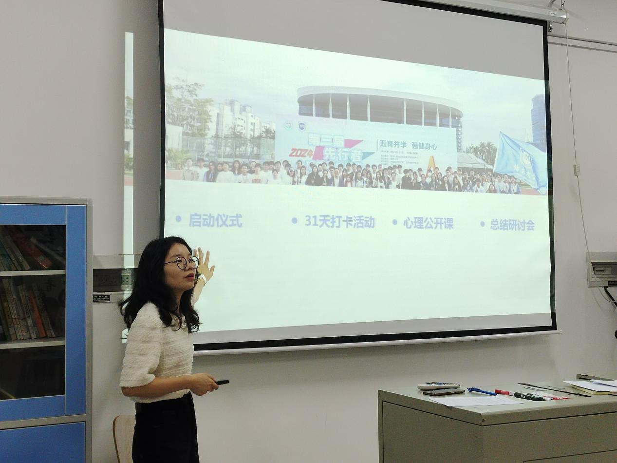 罗贝贝老师现场详细解读活动框架,她表示本次活动以“五育并举,强健身心”为核心,贯穿“启动仪式、31天打卡、心理公开课、总结研讨会”四大板块。其中,她重点阐述了参与31天打卡活动的要求,同时融入“感悟红色经典、传统寻美之旅、体会非遗传承”三项特色活动,旨在以文化浸润助力心理成长。