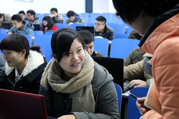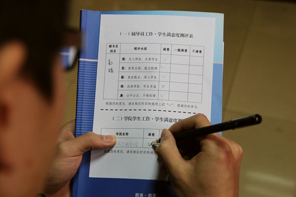 晚上,等到学生陆续回到宿舍,校团委 唐璟 老师带着自理会学生干部来到第五学生宿舍区,继续进行调查活动。11级财务管理专业的马小燕说:“没想到学校这么重视我们的看法,还专门到寝室让我们填写,我们一定会认真对待的,希望我们的评价可以为辅导员考核工作提供一些参考。”404寝室的一位同学说:“大学一路走过来辅导员给予了很多帮助,大四都忙于考研和找工作,和辅导员的联系也没有以前那么多了,但辅导员还是会找机会来宿舍和大家交流,我们很感激。测评表正好可以把我们的心声有形地表达出来。”