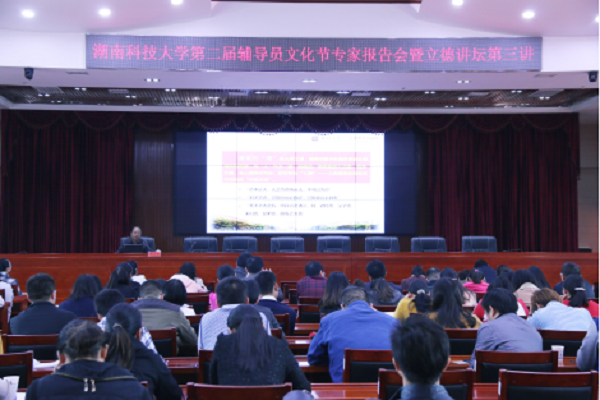 11月3日下午3点,我校第二届辅导员文化节专家报告会曁立德讲坛第三讲在综合办公楼五楼会议室召开。会议由学生工作处处长李红革主持,并邀请了中南大学马克思主义学院院长张卫良教授进行报告,讲述“立身文化与立身教育”的理念,我校各学院辅导员与会。