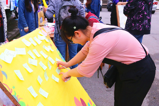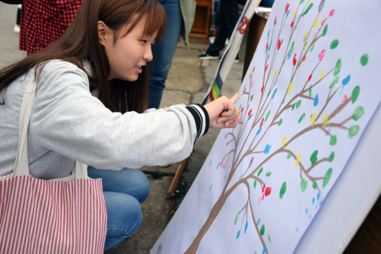 虽然天空飘着丝丝小雨,却未阻挡同学们的热情,比如法学院的“遗憾留言板”,艺术学院的“印泥树”,人文学院的“给陌生人写信”等众多活动也都聚集了更多来往的同学。