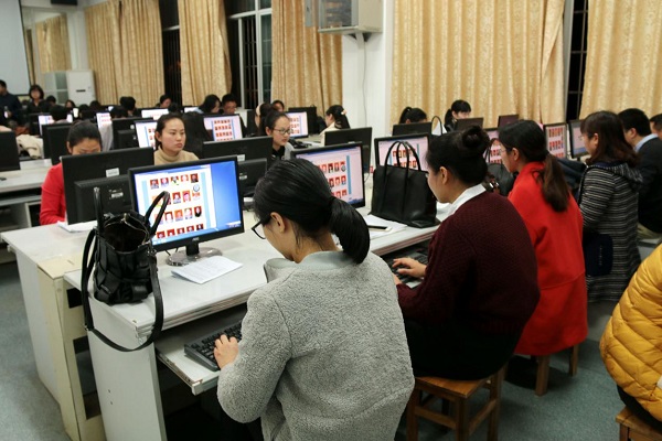 19:30开始的班情熟知环节则在逸夫楼217教室举行,因为本环节采用的是机试。学生工作处副处长蒋利平,莫江平,学生思想政治教育科科长吴大平,学生管理科科长姜太军,管理科老师秦红斌主要负责本环节的巡视与监考工作。在开始前,学生工作处的老师们认真布置安排会场各项情况,校学生自理会网络部和勤工助学部部分成员协助老师完成工作。随后,各学院的辅导员进入了紧张的测试中。本环节有“按图索骥”、“鱼目混珠”、“描述定位”三个小节,内容主要考察辅导员们对自己所带学生信息的了解情况。来自建筑与城乡规划学院的刘德碧老师已经是第五次参加比赛,她表示在2月26日得到比赛通知以后就开始准备,希望能够获得好的成绩。