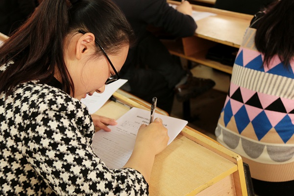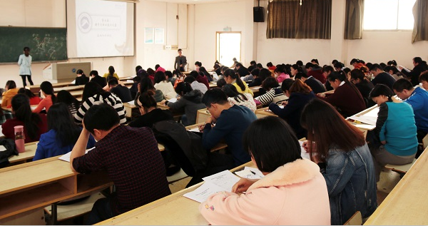 在第五教学楼2-8教室举行的基础知识竞赛环节采取的是闭卷笔试的形式,考试时长90分钟,总分100分。副校长胡石其,学生工作处处长李红革,副处长蒋利平、莫江平莅临本次竞赛现场。在考卷下发后,李红革处长着重强调了考风考纪,他直言:“考风考纪应从辅导员抓起,若辅导员不能遵守考场纪律,又拿什么来管理学生。”整个测试过程在一片刷刷的写字声中过去,安静而有序。