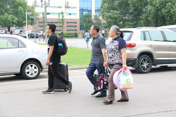 天色渐暗,有的新生已经去吃饭,有的刚到寝室,有的仍在寝室忙碌着。16级国际经济与贸易一班的周林格在志愿者的帮助下已经整理好了所有物品。周妈妈在一旁休息时夸赞着科大的校园环境,对志愿者们的热情服务也表示感到无比温暖。周同学和大多数新生一样,对刚开始的大学生活感到迷茫,但她仍开朗地表示:“不管怎样我想先多认识些人,多学点东西。我对新媒体比较感兴趣,想多接触一下。”据悉,周同学一家人在火车上待了四十多个小时,才从三千多公里以外来到这里。