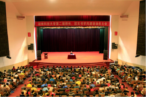 为了让同学们认识到学风建设的重要性,落实学风建设。11月8日9:30,由湖南科技大学学生工作处主办的湖南科技大学第二届班长、团支书学风建设动员大会在南区俱乐部召开。本次大会由学生工作处处长李红革主持,参加会议的为各学院13至15级的班长及团支书。