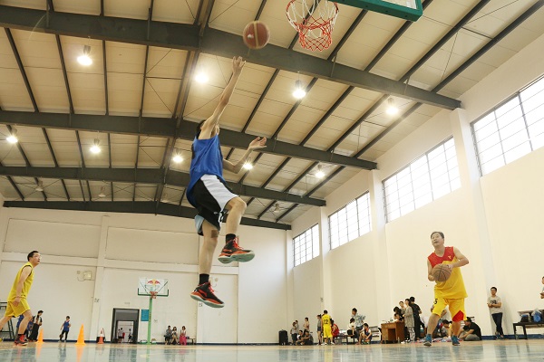 一声哨响之后,比赛开始,两队卯足了劲,火药味十足。B组12号球员苏俊铭完美的罚球为该队赢得首次加分,A组的运动员们也不甘示弱,13号球员朱奥快攻上篮拉回比分。在持续十分钟的第一节比赛后,双方队员都渐渐找到了感觉,比赛愈近白热化。第二节开始B组12号球员苏俊铭率先抢得控球权,长距离高抛传球给5号,5号反身扣篮得分,双方的完美配合赢得了观赛人员的喝彩,学生们齐声喊着“老师加油”,大家的注意力都集中在了比赛球员身上。在突破重重防守之后,A组球员抢篮得分。B组7号球员凭借身高优势抢得篮板得分,5号和12号球员又再次配合得分。第二节比赛以9:26的比分暂告一段落。