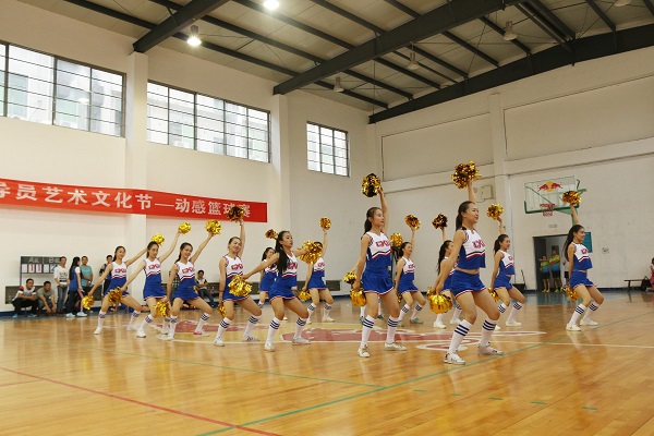 10月25日下午3:30,由学生工作处主办的动感篮球赛开幕式在南区新篮球馆一号场举行,辅导员队伍总共分成四组,由A组和B组首先进行比赛。在学生工作处处长李红革宣布开幕后,热情洋溢的啦啦操队员们以精彩的表演点燃了现场的火爆的氛围。