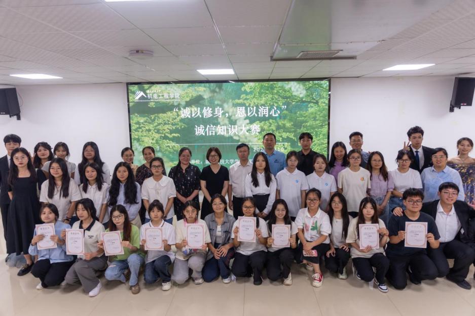 6月10日晚,湖南科技大学2025年度诚信知识大赛决赛在敏行楼报告厅成功举行。本次大赛由校学生资助管理中心主办、机电工程学院承办,以“诚以修身,恩以润心”为主题,旨在通过知识竞答与文艺展演相结合的形式,深植诚信理念,弘扬感恩精神,营造崇德守信、知行合一的校园文化氛围。学生工作部副部长吴大平出席活动,学生资助管理中心负责人谭艳、八支学院代表队及相关师生代表与会。