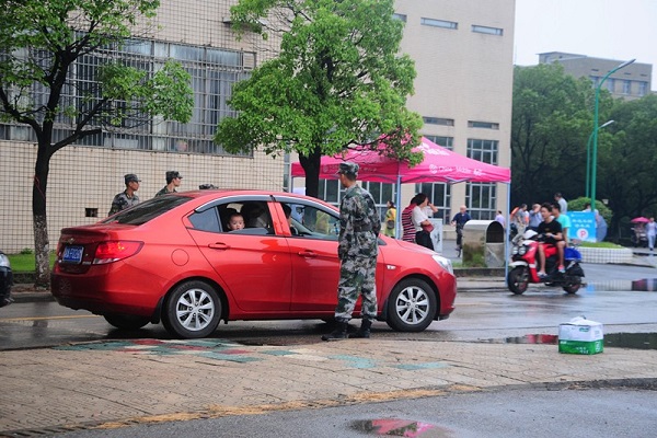 军训团和安全信息队出动全体队员维护迎新期间校园秩序,但9月9日下午至9月10日大雨滂沱,加大了秩序维护的难度,军训团和安全信息队不得不冒雨指挥来往车辆安全行驶,引导新生及家长行走安全路线。9月10日,二营一连的朱靓在北校区美术楼沿线值班,给往来新生、车辆指路并疏通道路,下午2:00左右,值班结束的朱靓全身湿透,“又累又冷,但是看到新生们能顺利找到自己的志愿者心里还是暖暖的。”朱靓笑着说。