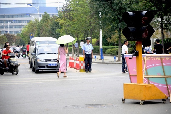 为了保证迎新期间校内维持了更好的教学秩序,防止交通拥堵,保卫处也提前做了通告,在学校的各个路口都增加了交警人员指挥交通,并有军训团和安全信息队配合进行车辆指挥。