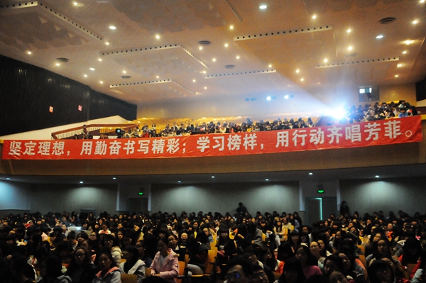 尼克·胡哲说过:“在生命中,我们不能选择什么,却可以改变什么。”11月22日,由学生工作处主办、艺术学院承办的“芳菲之歌”优秀女生报告会在南区俱乐部顺利举行,校党委副书记朱川曲,学生工作处处长李红革,招生就业处处长戴树根及19个学院的党委副书记参加报告会,14级各学院女生认真聆听了报告会。在报告会上,十位优秀女生讲述了她们改变成长旋律的故事。