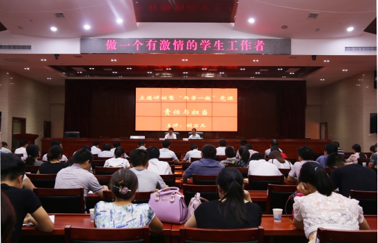 7月7日15:00,主题为“责任与担当,立德讲坛暨‘两学一做’”的党课于综合楼会议厅举办。校学生工作处各领导,各学院辅导员参与此次学习。