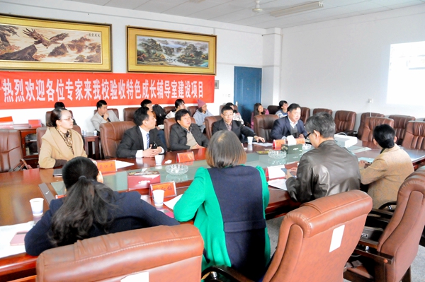 11月21日14:00,中南林业科技大学学生工作部部长李建兵、心理中心主任袁红梅、长沙学院外国语学院党委书记贺革、结项验收项目秘书喻玲来到我校进行湖南高校2013年特色成长辅导室建设项目结项验收工作。四位结项专家针对我校的“‘润梦空间’特色成长室”与“资源开发型成长辅导室”两个项目在第八教学楼203教室举行了结项验收。我校学生工作处处长李红革、副处长莫江平、校团委书记尹风雨、教育学院书记谭建平、副书记王伟清参加了此次会议。