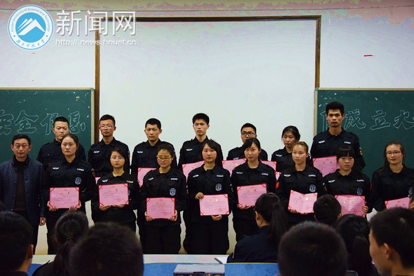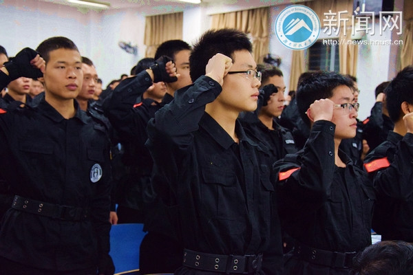 在学生安全信息队队长朱雪峰的带领下,84位新队员进行了宣誓。朱雪峰表示:“队员编制精简,全方位覆盖各个学院和宿舍区。班方式不再是日常三班巡逻,而是通过各种方式进行信息收集,包括下寝、向门卫搜集信息、网络平台搜集、定期的微笑岗亭摆点,进行失物招领的工作开展和安全宣传,防火防盗防不稳定因素将是我们以后工作的重点。”