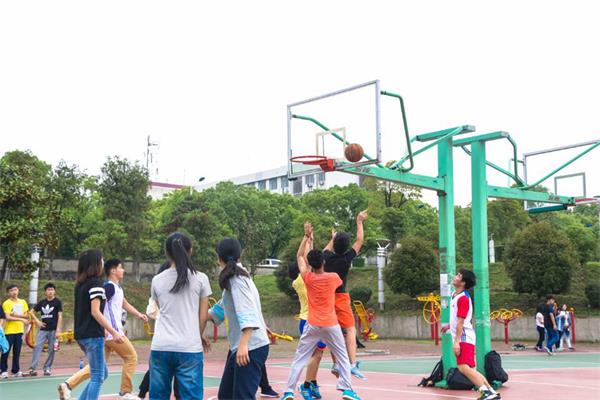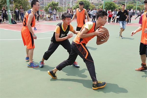 篮球赛共分为三场小组循环赛,一场半决赛和一场总决赛。 每场球赛分为四个小节,每节十分钟。其中第二、三节采取3+2比赛形式,即三男两女的比赛组队结构,女生允许犯规,进球可得双倍积分,且男生不得防守女生。这样的规则点燃了参赛队员的斗志,也为比赛带来了不少变数和转机。