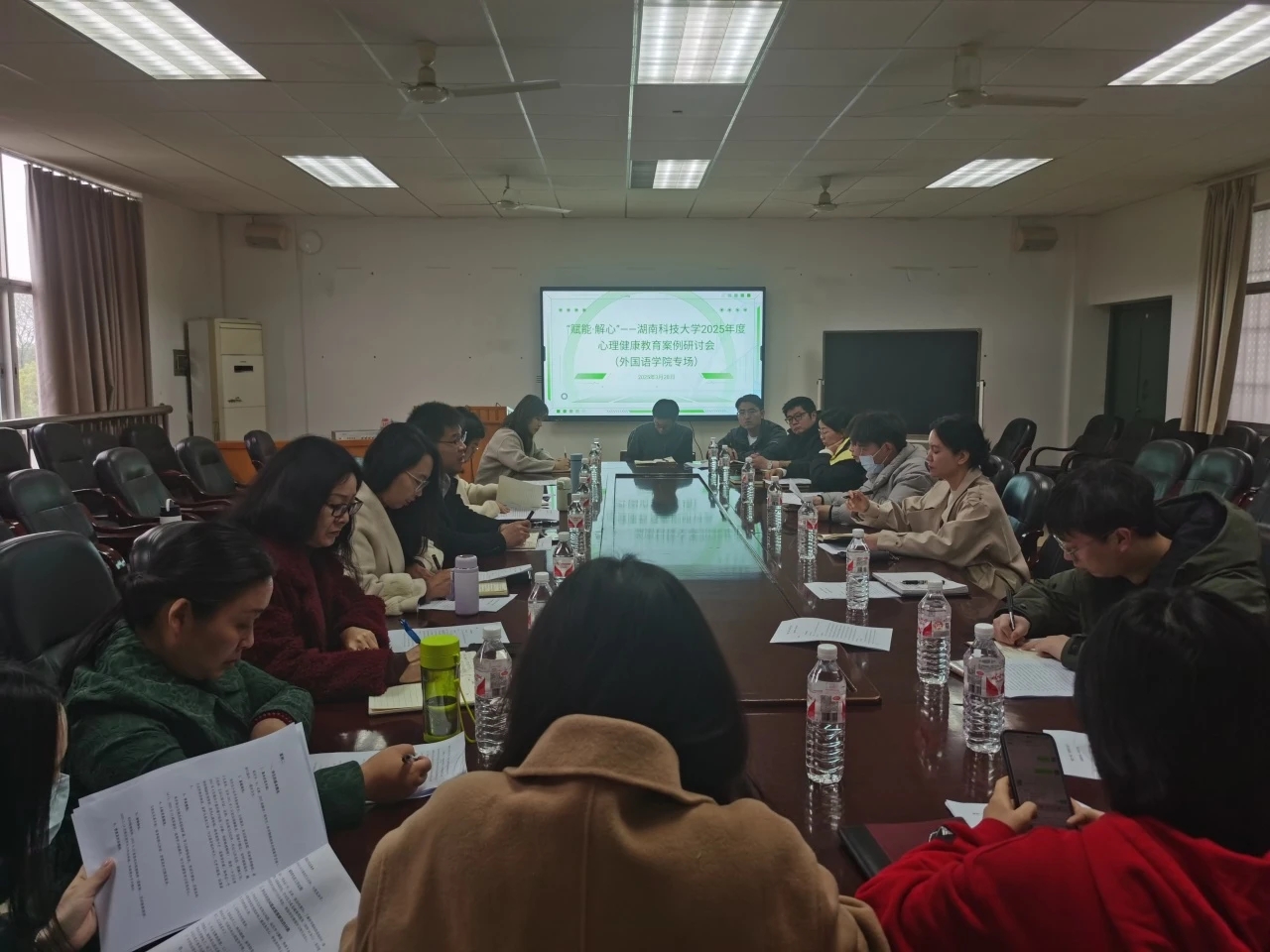 为提升心理健康教育工作队伍的专业能力,加强学生心理工作的实效性,3月28日上午,由心理健康教育中心主办、外国语学院承办的第一期“赋能·解心”案例研讨会在外国语学院311会议室顺利举行。学工部副部长吴成义、心理健康教育中心专职教师、外国语学院党委副书记刘菁菁及全体辅导员班主任、各学院心理专干代表近20人参与研讨,活动由心理健康教育中心刘云峰主任主持。