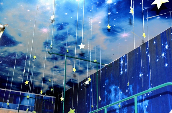 垂落的星星、深蓝色的壁纸,置身寝室宛若处在星空之下。外国语学院汉语国际教育专业四名“国宝级”男生将他们设计的寝室取名为“夜空中最闪亮的星”,风格独特的设计还处处与他们的梦想相伴。巨大的世界地图是王宇昂环游世界的梦想;“奋斗的青春最美丽”标语是尚铖对下乡支教梦想的坚持;挂在墙上属于自己的球衣,是王润杰对足球的执着;英文版的励志格言,是阳康不可阻挡的考研决心。