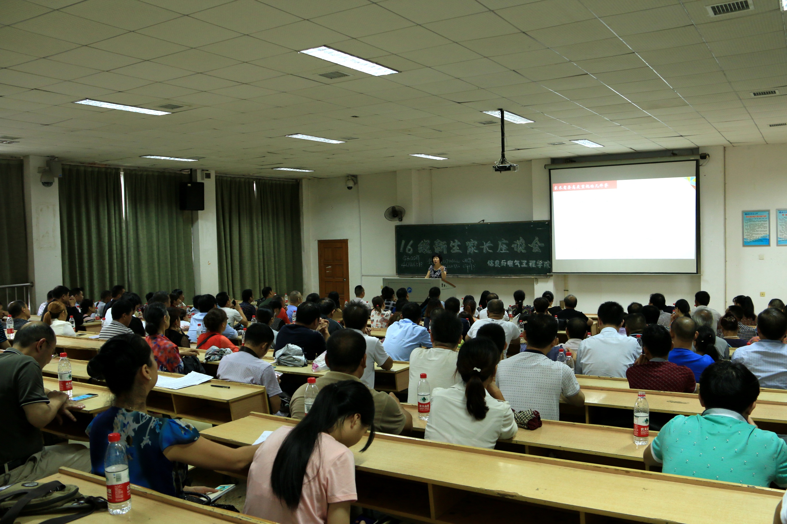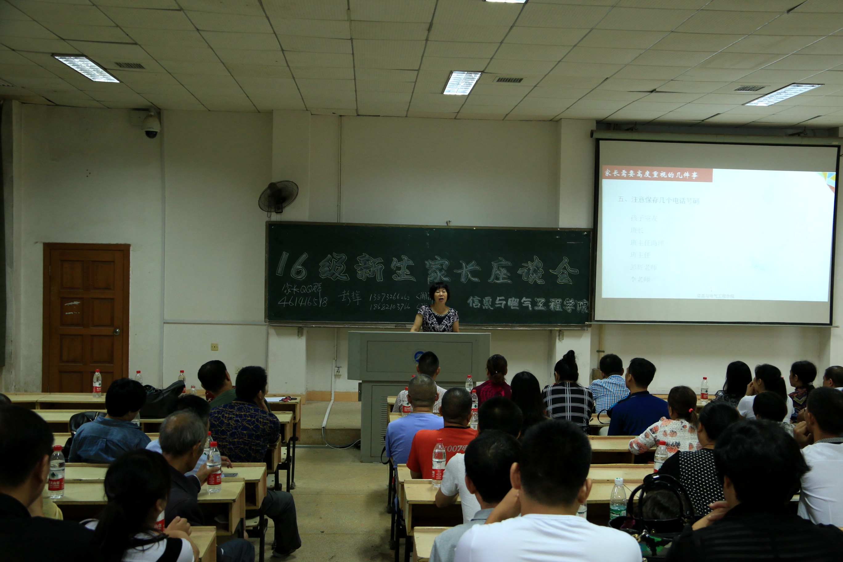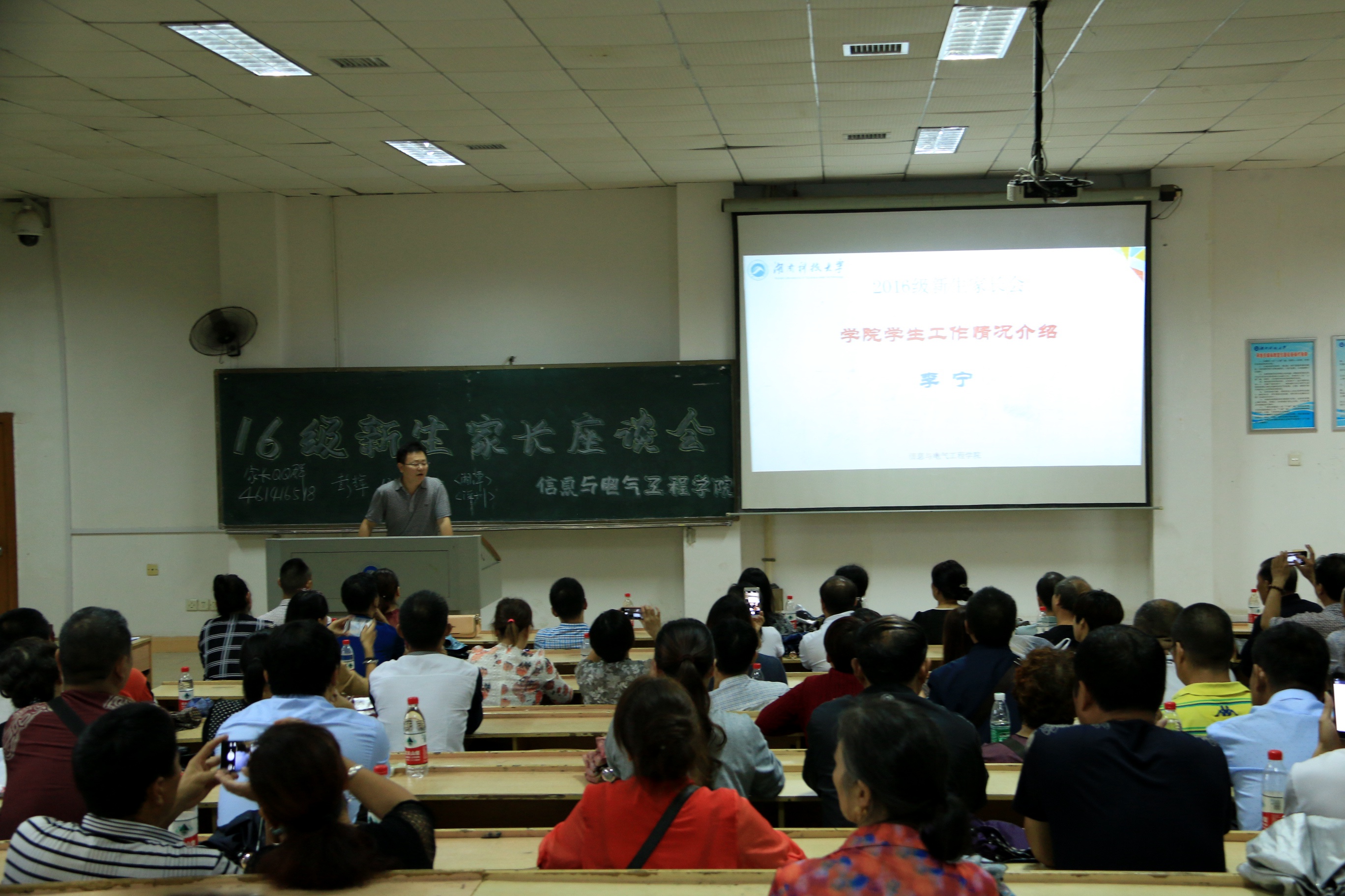 9月10日上午,信息与电气工程学院2016级新生家长会于第五教学楼2-5圆满落幕,此次家长会为期三天共分3场进行。院领导与来自五湖四海的家长集聚一堂,为增进家长对学院的了解,达成家长与学校共同努力促进学生快速成长的共识。信息学院院长周少武、党委书记王鹏飞、党委副书记李宁、副院长欧青立、16级辅导员彭辉出席会议。