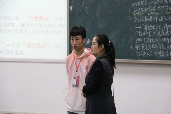 此次普查以“90项症状清单”“艾森克个性测验”“大学生心理健康调查表”等调查问卷为审查工具。活动开始前,工作人员引导同学们来到普查地点,并向同学们详细讲解了操作流程以及答题过程中所应注意的事项和要求,并宣读测评引导语。今年的心理普查工作安排不同于往年,此次普查采用微信扫描二维码的方式进入平台参与答题,避免了网站拥挤的情况出现,操作也更加方便快捷。普查一开始,现场一片寂静,同学们全神贯注于答题,工作人员在教室中巡查流动,以方便同学们咨询相关问题。各位同学们的积极配合和心理健康教育服务部的精心策划,让本次普查活动圆满结束。