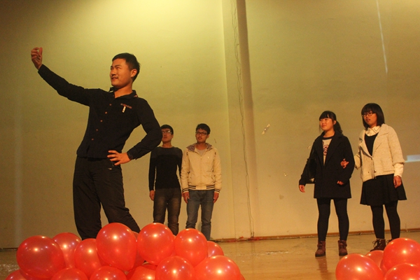 14建筑学1班的赵晴同学的歌曲《Let it go》改变了原始用音乐伴奏的传统表演模式,而是用纯人声伴奏,没有任何音效,只靠5个人用嘴打节拍,让观众眼前一亮;动感火辣的劲舞配上《猪八戒背媳妇》的曲,劲舞VS神曲这样的组合令全场瞠目结舌。