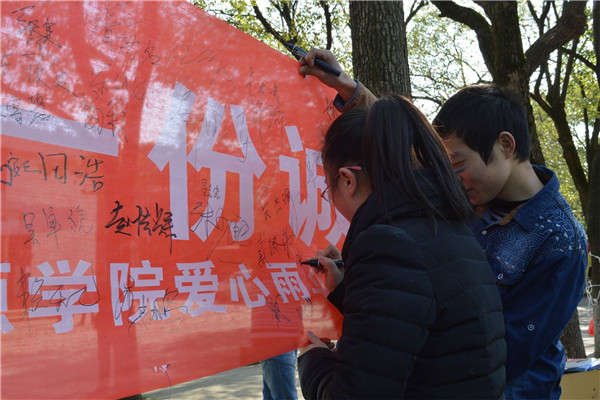 此项目主要立足于诚信,向需要雨伞的科大师生提供帮助,同时希望同学们不会因为下雨天忘记带伞而担忧。活动中,来往的同学在了解到此次活动的目的及意义后,纷纷上前在横幅上签名表示对活动的支持,也很乐意捐出一元钱资助这个项目。部分同学也在现场拿出手机通过qq、微信发送一元钱红包。短短的一个小时时间里,现场已筹到5把雨伞、241元现金和198元红包。一个叫秦红的同学说到:“之前下雨的时候看到好多同学没伞淋雨跑回宿舍,看着挺心疼的,现在有爱心雨伞了,心里特别的感动。