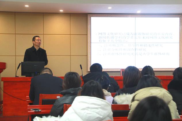 12月4日晚,人文学院“人文大家论坛”系列讲座第209讲于立言楼B4-1室举行,华南理工大学新闻与传播学院博士生导师蒋建国教授受邀开展关于“网络亚文化研究”的讲座。讲座由人文学院新闻与传播学系主任陈功主持。湘潭大学社科处处长刘中望、文学与新闻学院副院长田华、新闻系主任黄春霞、新闻系教师许高勇,衡阳师范学院网络与新媒体专业负责人王志永,以及人文学院张顺军、王奕祯、汪宴卿等老师莅临讲座,19级、20级新闻专业本科生与研究生到场聆听。