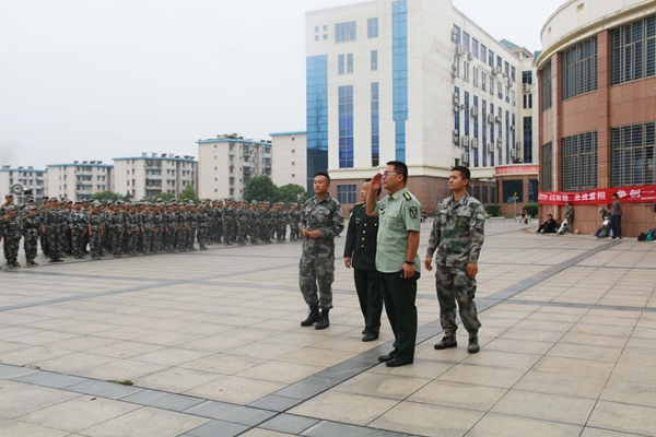 2017年10月7日下午五点,湖南科技大学商学院2017级学生军训第一次队列会操在南校图书馆前坪举行。湖南科技大学武装部副部长沈志祥、指导老师秦奕、团长潘国禹和营长于鹏对此次会操进行检阅。