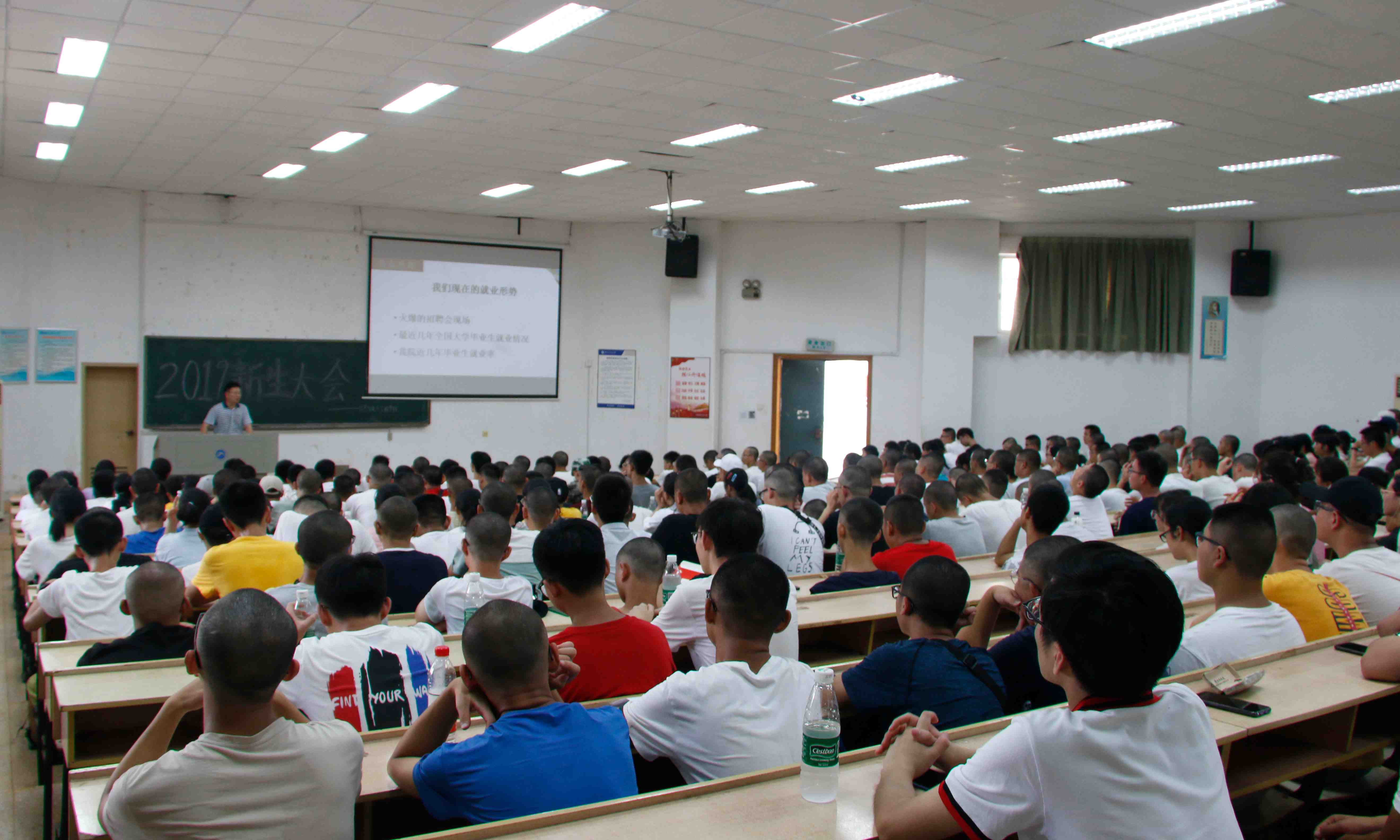 李宁则对学院四级通过率、毕业生就业率、就业形势进行了分析,他指出:“我们学院不仅要安排好学生工作,还要一项项落实好学生工作,设身处地为学生着想,把学生工作完善地更好。”随后,李宁就高中与大学的不同来突出介绍大学的特点,对于新生来说要把握机会,提升自我,同时他也列出了一些前车之鉴和优秀学生代表来提醒新生在大学里不要松懈。最后他介绍了学院的日常管理与服务以及寝室建设,希望新生能尽早适应新环境,营造良好舒适的寝室氛围。