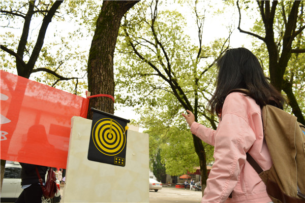 “同学,你有用过第五教学楼的小红伞吗,想让科大下雨天一起不复返吗?来,来,来,献出一点爱,让小红伞为你撑去一片晴天。”现场欢闹的气氛吸引了众多同学。值得一提的是,本次活动摒弃传统的形式主义募捐,采取投标游戏的形式。参与者只需为爱心雨伞活动贡献一份力所能及的温暖,就能获得一次投标的机会,并可以取得奖品。