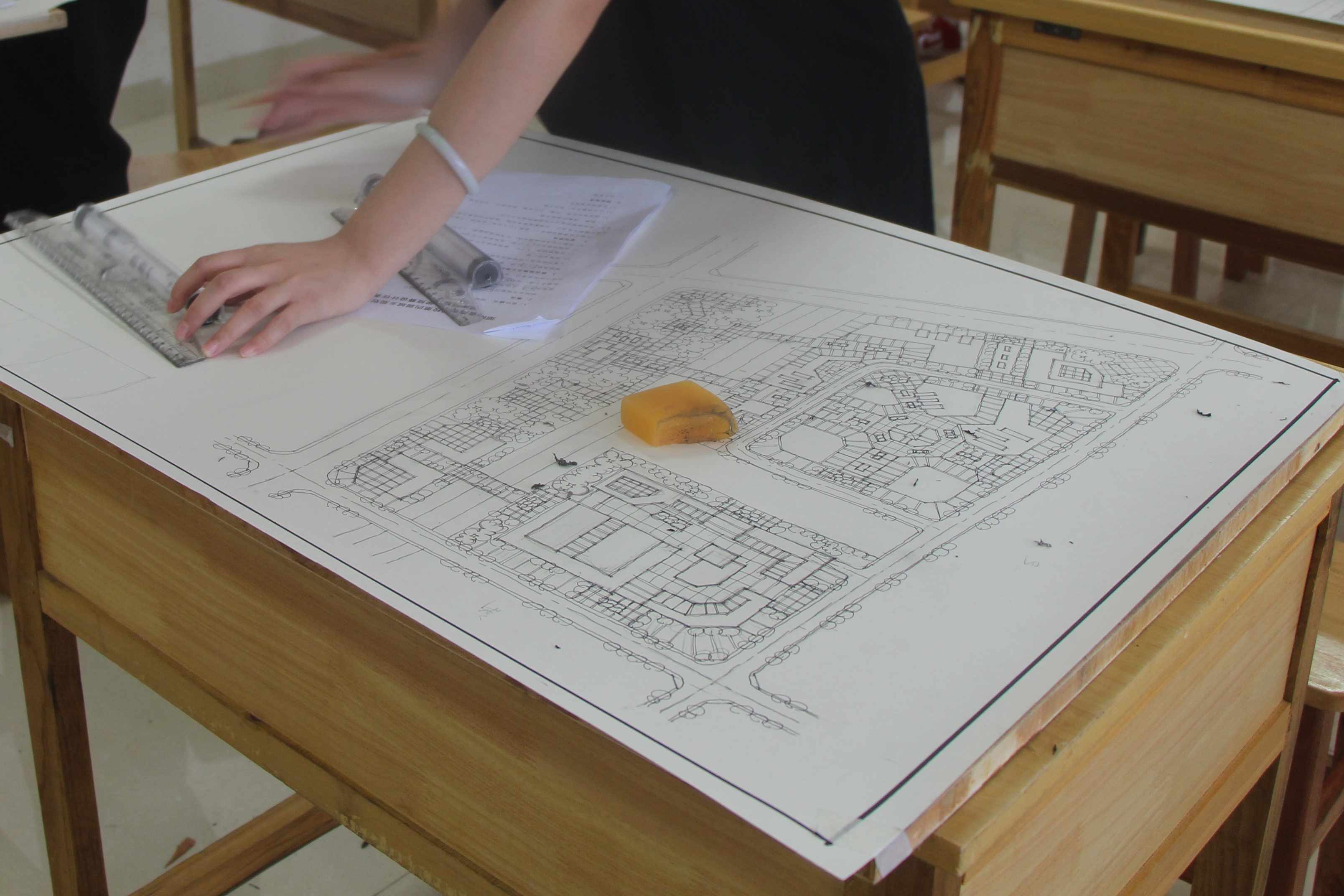 中午十二点,参加线稿组、色彩组、创意组的同学陆续交了自己的作品。而参加快题组的同学还在继续,他们大多在准备考研,尽管有六个小时,仿佛也远远不够,几乎是不停歇地画,中午没时间吃饭,只吃点简单的东西充饥。一个个小房子在图纸上呈现出来,相信辛勤的汗水终究不会白费,会浇灌梦想的花朵。