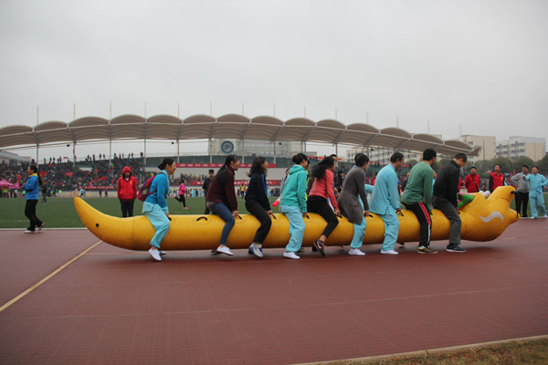10月29日上午九点,在绵绵细雨中,伴随着观众们热情的欢呼声,我校教职工在北校区田径场举行了“旱地龙舟”、“协力竞走”,“快乐传递”等趣味性比赛。