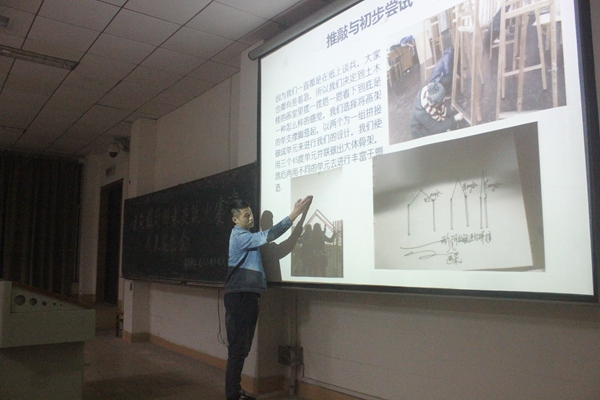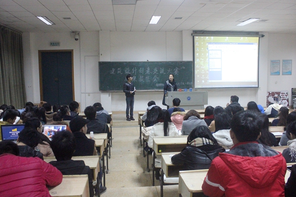 12月9日,13级建筑学院主办的首届建筑设计创意交流大赛成果报告会在第五教学楼2-7教室举行。指导老师黄靖淇出席了报告会,建筑设计创意交流大赛的参赛选手以及建筑学、城乡规划专业的同学参加了此次报告会。