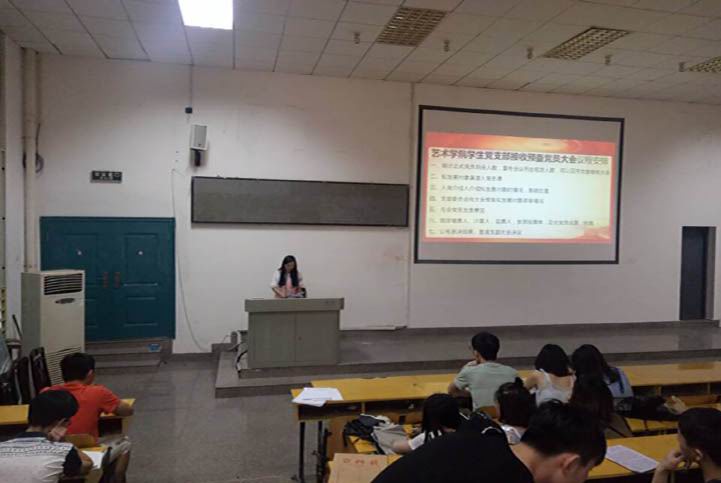 大会开始,预备党员逐一进宣读党志愿书并表明自己的入党动机,简明扼要地汇报了预备期间个人在思想态度、生活、学习、工作等方面的突出表现,表达了他们的入党动机和加入中国共产党的强烈愿望,并由他们对应的入党介绍人对其学习、工作、实践活动等方面进行评价。随后拥有表决权的正式党员对接收党员与预备党员进行投票表决。经与会正式党员的一致表决,艺术学院共有二十一名预备党员顺利通过党组织审核,成为正式党员。二十五名同学顺利通过党组织审核,成为预备党员。