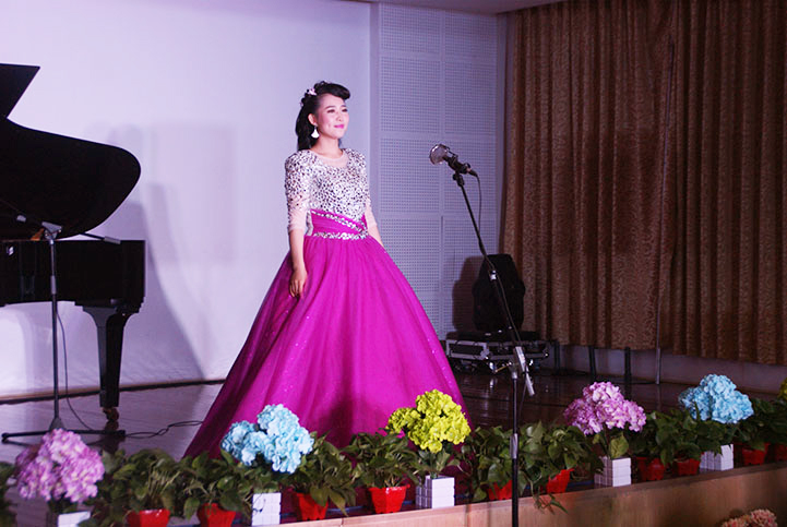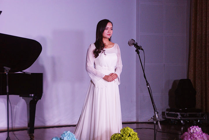 一开场,硕士毕业生陈丽莎身着粉红礼服,一首词句感人,韵律优美的《望月》拉开音乐会序幕。在观众们还沉浸在浓浓思乡情中时,一首《帕米尔我的家乡多么地美》顿时使现场气氛活跃起来,歌曲以热烈欢快的节奏,融合了美声唱法,展现了极高的音乐造诣。陈丽莎两首歌曲歌唱完后,硕士毕业生姜琳子着一袭白裙踏着音乐声而来,深情演唱了《多情的土地》和《生死相依我苦恋着你》,用充满情意的优美歌喉展现了歌曲不一样的风情韵味。接下来,陈丽莎演唱了《世上没有优丽荻茜我怎么活》、《一杯美酒》、《美丽家园》和《美妙时刻即将来临》,姜琳子演唱了《祖国之恋》、《我和我的祖国》、《为了谁》和《你们可知道》等动人歌曲。最后,两人深情合唱一曲《越走路越宽》,至此本次音乐会圆满落幕。