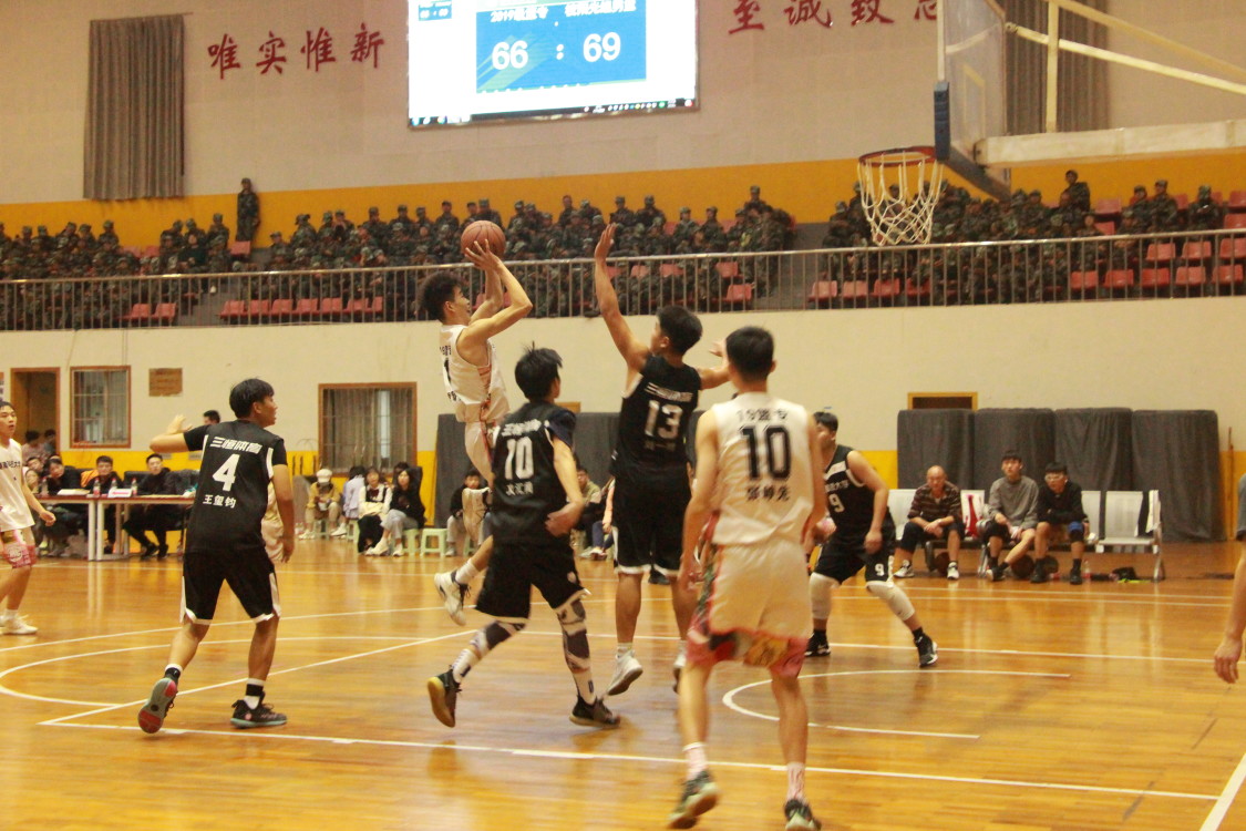 比赛开始之际,双方进行试探,你追我赶,较为保守。场上解说穿插其中,配合音乐,气氛紧张。比赛渐入白热化阶段,双方比分交替上升,僵持不下。两支队伍竞争激烈,终于,谭师铭突破重围,一个漂亮的转身,假动作左虚右实,拿下漂亮的三分,观众又是一阵喝彩。阳光篮球组不甘示弱,抓住体育学院代表队内线这一防守薄弱的漏洞,强攻内线,一连拿下两分。双方实力胶着不下,阳光篮球组奋勇直追,最终以101:98战胜体育学院代表队,成为本次比赛的赢家。