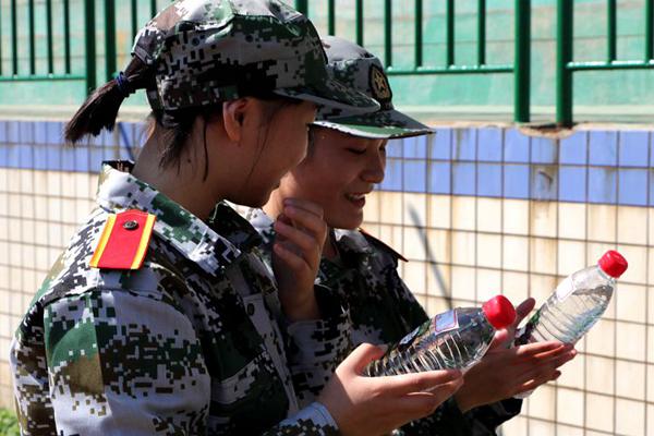 “休息一刻钟。”只听教官洪亮的口令结束,大家蜂拥而上去拿自己的水瓶,“哇,这个真好看”,大家爱不释手地拿着手中的水瓶,左看右看仔细端详,引之为自己的小确幸,点滴化作漫天辰,笑意难消。
