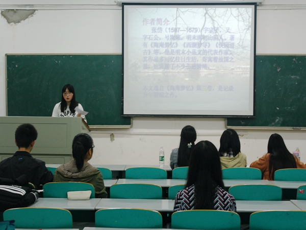 这不是老师上课的情景,而是人文学院讲课比赛复赛的片段。为丰富同学们的课余生活,展现学生风采,人文学院特举办讲课比赛,鼓励同学们从台下走到台上,从听众换为老师,从多角度体会课堂。本次比赛内容涵盖语文、数学、历史及英语四个科目,选手讲课时间为8分钟,人文学院研究生担任评委。