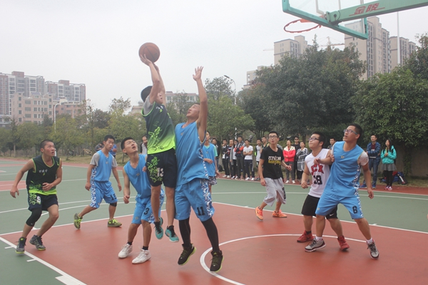 为了丰富大学生的第二课堂,提高建筑学院新生的综合素质,增强同学们的集体凝聚力和班级荣誉感,在学院的大力支持下,建院成功举办了15级新生篮球赛。11月22日12:30在南校新篮球场举行了篮球赛的最后一场比赛,这场冠亚季的争夺战吸引了众多同学的关注,比赛场上同学们的呐喊声、加油声此起彼伏,他们都用热切的目光注视着自己专业的球员们,希望自己专业的球员们能在最后一场比赛中大放异彩。