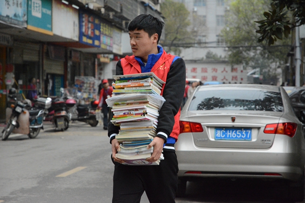 潇湘学院志愿者在助残组分工合作,其中两队分别去街市上做手工义卖,筹集募捐款,另外两队负责搬运文具、签到、旧衣服的整理、打扫卫生。义卖的物品主要是自闭症儿童手工制作的工艺品,他们制作的成品十分精美细致,如玫瑰、苹果、小动物等,令许多小孩爱不释手,不到一个上午,青年志愿者们义卖成果颇丰,筹得400元左右的善款,他们表示献爱心不分大小,很开心为这次活动出汗出力。