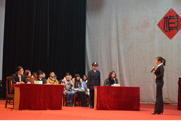 12月21日晚七点,由法学院法律协会主办的首部校园悬疑微电影上映暨首次公开模拟英美庭审表演在俱乐部正式拉开序幕。出席此次活动的嘉宾有法学院党委副书记叶军,辅导员赵晗冰,法学院的老师胡之芳、雷连莉以及法学院主席团所有成员。