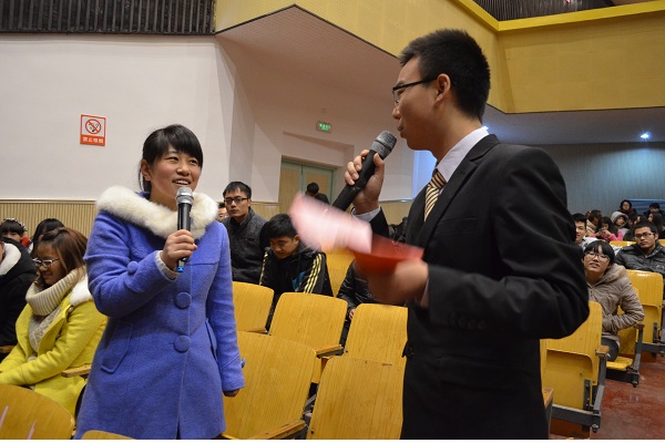 活动伊始,工作人员播放关于案情的微电影。电影主要讲述一对情侣争吵后产生不快,在之后的一次用餐中,男主角喝完红酒离奇死亡,女主角被拘捕。看完电影后,进入庭审阶段,本次模拟法庭采用的是英美法系的审判模式,其审判模式的最大特点是陪审团制度。主持人从台下观众中抽取12位同学作为模拟法庭的陪审员,模拟英美庭审活动正式开始。