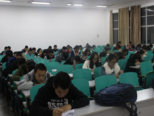此次竞赛采取闭卷笔试的方式进行,试卷分为选择题和填空题两大类。参赛者既可以参加本专业的考试,也可以跨专业考试。比赛于晚上7:00按时开始,考场上井然有序,同学们都开始认真做题,有时皱着眉头冥思苦想,有时恍然大悟奋笔疾书。