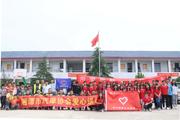 5月11日8:00,为了响应国家的教育扶贫号召,传承中华民族助人扶幼的传统美德,弘扬“奉献、友爱、互助、进步”的志愿服务精神,湖南科技大学商学院青年志愿团及20名志愿者联合湘潭市汽摩运动协会共同抵达了湘乡市育塅大桥小学进行爱心支教活动,商学院学生会副主席赵钰琛共同前往。