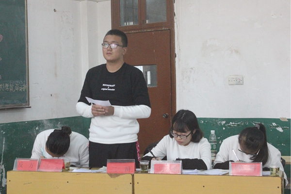 比赛落下帷幕,评委退席评议。同时在场的同学也积极地向正反双方辩手提问互动。接着,辩论队成员崔滢滢就赛场上的正反方每位辩手的表现进行客观评价。最终,比赛主席宣布本场比赛反方胜,胜出的地理信息科学专业顺利进入决赛,而最佳辩手则为正方四辩。