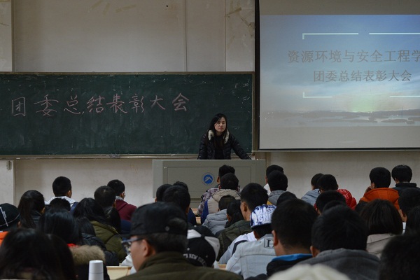 12月20日12:00,资源环境与安全工程学院团委总结表彰大会在第五教学楼2-1室如期举行,院团委书记张新笛老师携主席团成员参加大会,团委全体学生干部160余人与会。