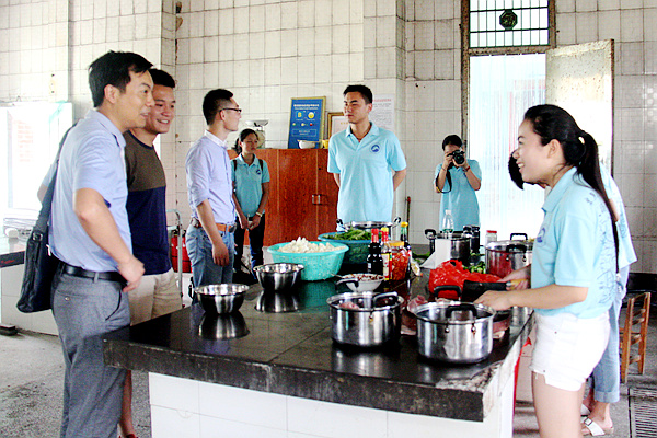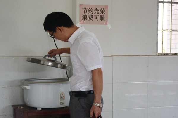 随后他们来到厨房,后勤组正在准备中午的饭菜,书记们四处查看厨房的蔬菜米饭,姚健询问后勤组人员伙食情况,得知中午的饭菜为五菜一汤时,曾练武表示饭菜平时要做到干净卫生,才能让大家吃得放心。