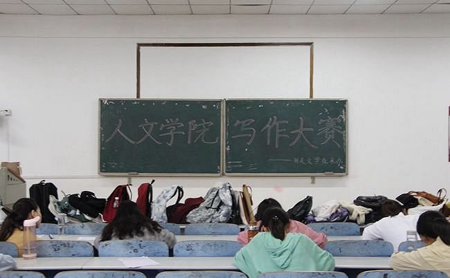 为丰富大学生的文化生活,提高学生精神文化品位,进一步加强学生写作的能力,9月28日下午,人文学院于八教1-1、1-3教室举办现场写作大赛。此次大赛由湘灵文学社承办,面向我院全体学生,共有210名同学参加。本次比赛方式为主题写作,用给定的主题在150分钟内写一篇文章,题目自拟,文体不限,之后上交评委团进行评比。