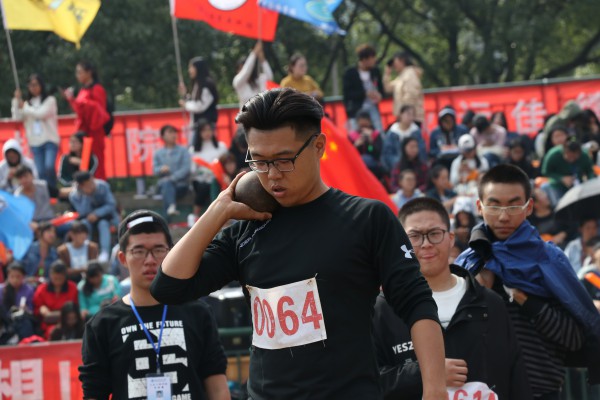 今年运动会的天气打破了往届阴雨绵绵的先例,阳光笼罩着田径场。自信的参赛者,热情的观众,使整个运动场的气氛迅速火热起来。比赛开始之前,选手们都在熟悉场地、活动筋骨,积极的调整自身的状态。比赛正式开始,随着运动员有力的挥臂,铅球在空中划出一道优美的弧线,随后一声 闷响,观众席爆发出雷鸣般的喝彩声。运动员们的动作干净利落,充满爆发性的力量。看台上,观众们始终关注着赛场上的战况,即使烈日似火,也无法掩盖他们的激情。随着时间的流逝,比赛愈演愈烈,运动员们也愈战愈勇。比赛结束,土木工程学院的马佳南以预赛第二名的成绩进入决赛。