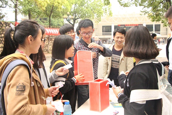 他们弯腰仔细浏览每张手抄报,为自己心仪的作品投票,在横幅上签上自己的名字,参加安全知识问答。4月27日10时开始,建筑学院治安保卫部(以下简称“治保部”)在建筑楼前开展了手抄报投票、名为“构建文明新校园,须要安全做先锋”的横幅签名以及生活安全知识问答等活动。三项活动同时进行,引得许多同学陆续前来参与。